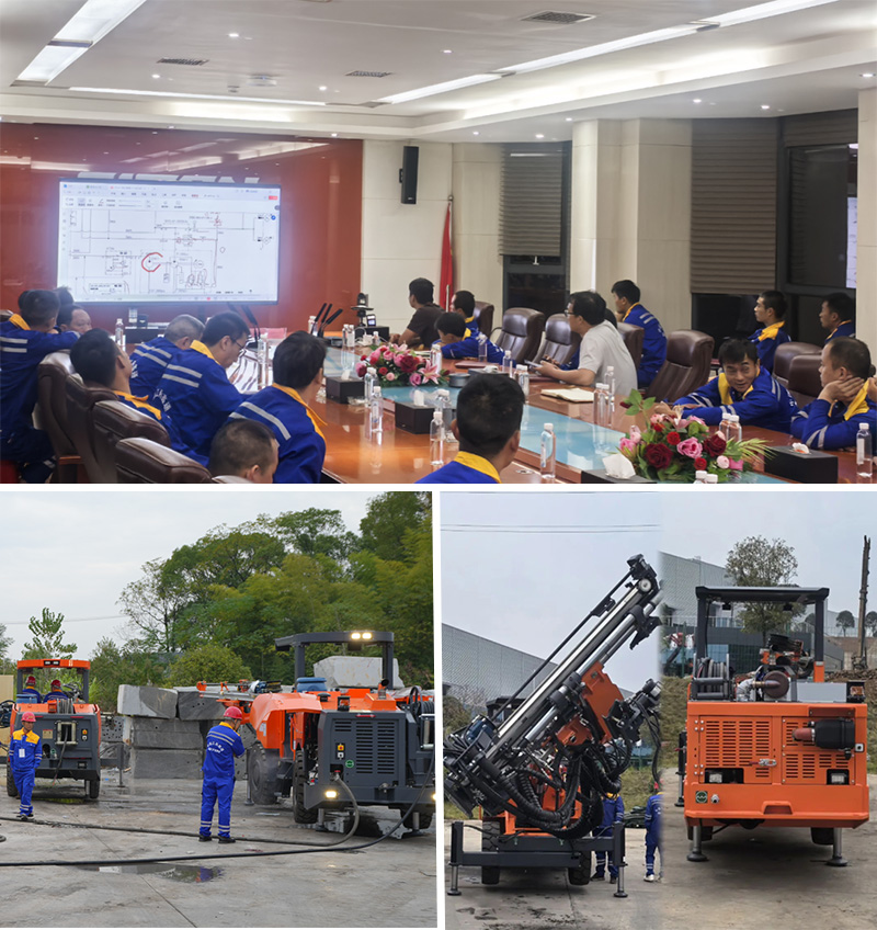 培訓(xùn)以“理論結(jié)合實(shí)踐”的模式開展,針對江西鑫通礦用掘進(jìn)鉆車和礦用錨桿鉆車展開教學(xué),理論課程涵蓋臺(tái)車的運(yùn)行原理、保養(yǎng)和維修知識(shí);設(shè)備實(shí)操通過結(jié)合模擬掌子面對眼、在巖石上進(jìn)行鉆孔等課程,為學(xué)員提升操作技能打下了堅(jiān)實(shí)的基礎(chǔ)。